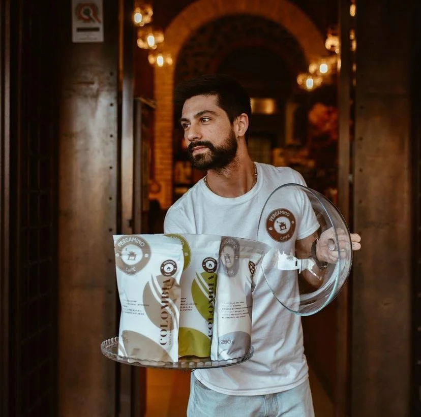 I have been working in the catering field for more than 15 years, I have been at Pergamino for just over three years. It is a magical place, a small corner of coffee in the district of Prati, a historic district of Rome. I like the concept of the Pergamino, that is to collaborate with the whole community, from Italian roasters to foreigners. This gives us the opportunity to taste many coffees with many different stories united by the many different stories of the roasters, in addition to the many international clientele that comes to visit us and there is a great breath of internationality. It's very inspiring.